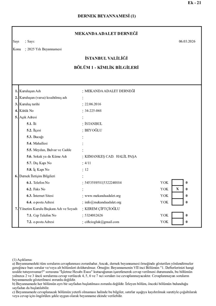 Beyanname ve Faaliyet Raporları