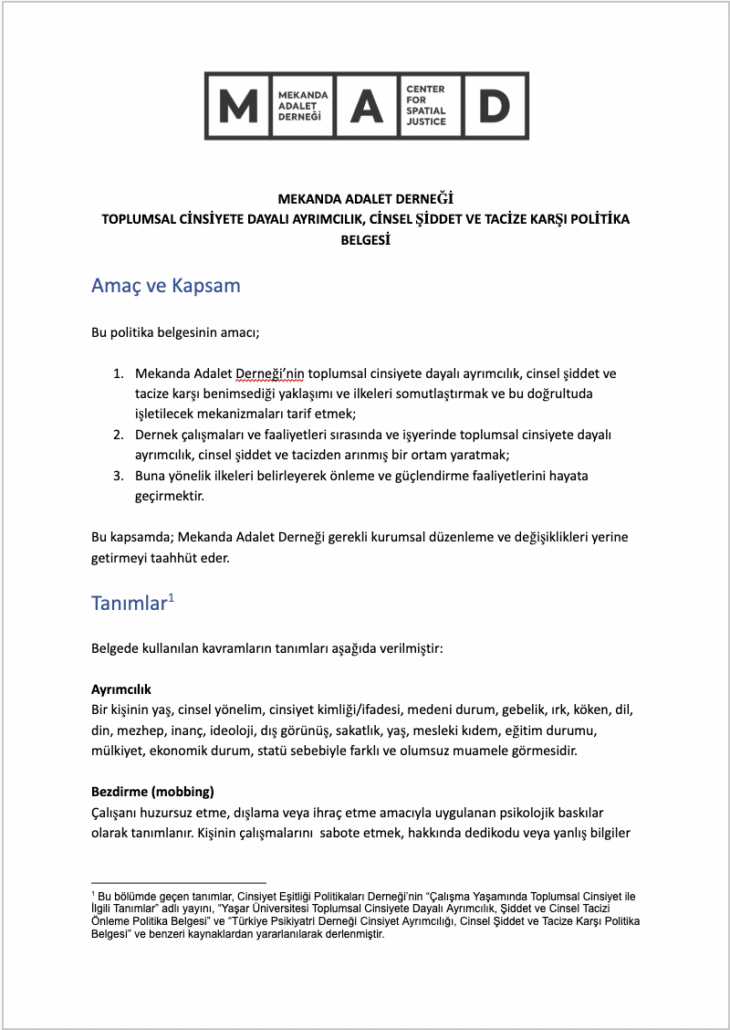 TOPLUMSAL CİNSİYETE DAYALI AYRIMCILIK, CİNSEL ŞİDDET VE TACİZE KARŞI POLİTİKA BELGESİ