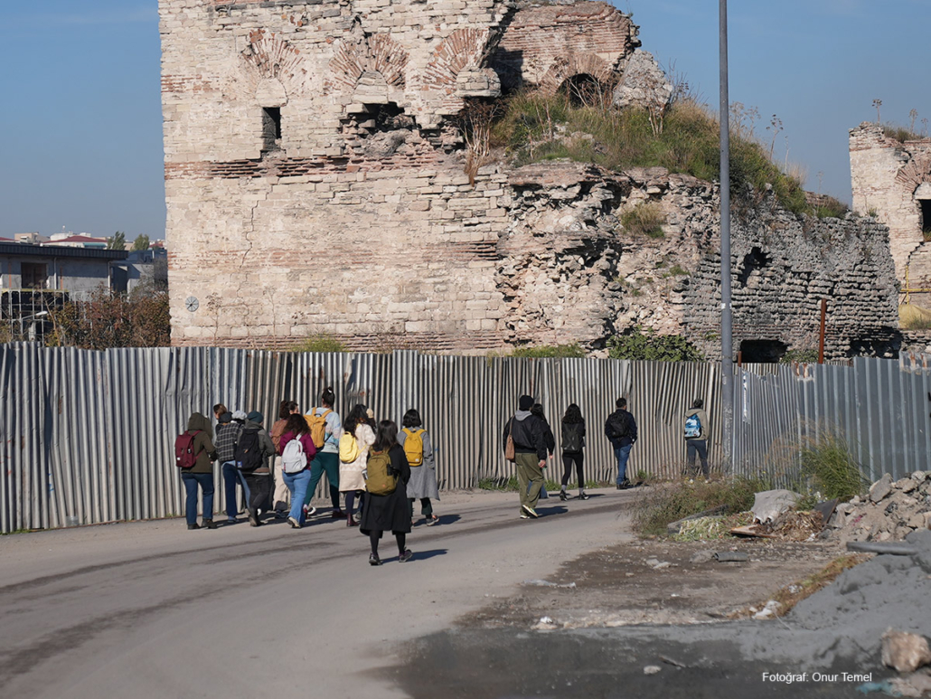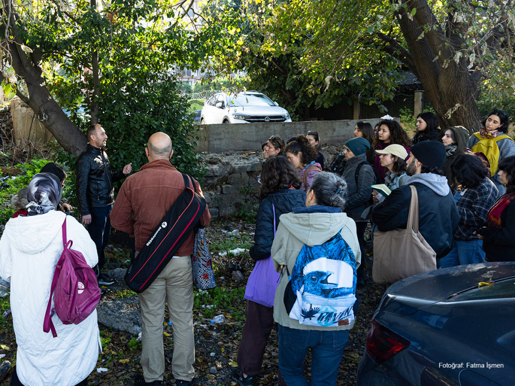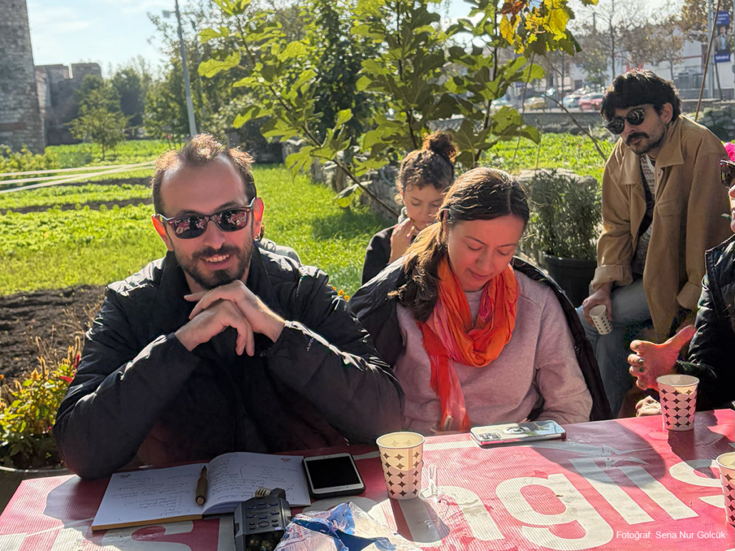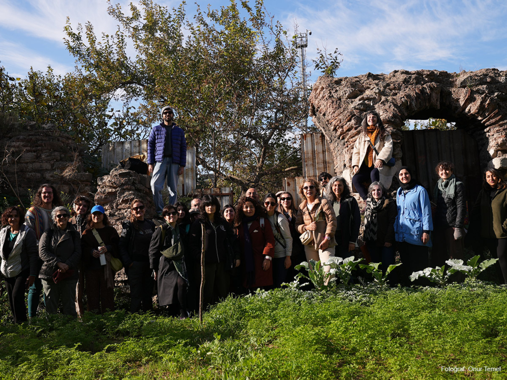 İkinci günde ilk olarak, arkeolog Alessandra Ricci ile buluştuk. 5. yüzyıldan bugüne Yedikule’nin katmanlı tarihini dinledik ve kültürel miras koruma yaklaşımlarının açmazlarını konuştuk. Ardından Dursun ve Kezban Kaplan’ın bostanında taze pazı kavurması ve tazecik ev ekmeğiyle öğle yemeğimizi yedik. Öğleden sonra arkeolog Yiğit Ozar’dan müdahil arkeoloji ile sur–bostan ilişkisini; kültür mirası savunucusu İnanç Kıran’dan ise bostanların korunması mücadelesinde bilgiye erişimin ve süreç takibinin nasıl işlediğini dinledik. Gün, Kezban Kaplan’ın tohumları göstermesi ve birlikte demet bağlama pratiğiyle tamamlandı.