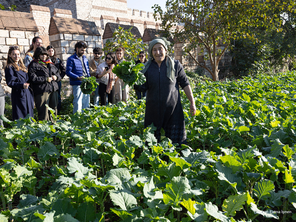 İlk gün, tarihçi Ayhan Han rehberliğinde İsmailpaşa Bostanı’ndan Belgradkapı Panagia Kilisesi bostanına yürüyerek Yedikule’nin katmanlı peyzajını yerinde gördük. Sevda ve Recep Kayan’ın bostanındaki öğle yemeğimizde bostanın nimetlerinden faydalandık; taze otlardan salatanın eşlikçileri sıcacık pişilerdi. Ünal Akkemik’ten İstanbul’un endemik bitkilerini ve Bediz Yılmaz’dan kentte tarımsal üretimin sürdürülmesinin önemini dinledik. Gün, Recep Kayan’ın ekimde geleneksel bir yöntem olan, suyun verimli kullanılmasını sağlayan maşula tekniğini göstermesiyle sonlandı.