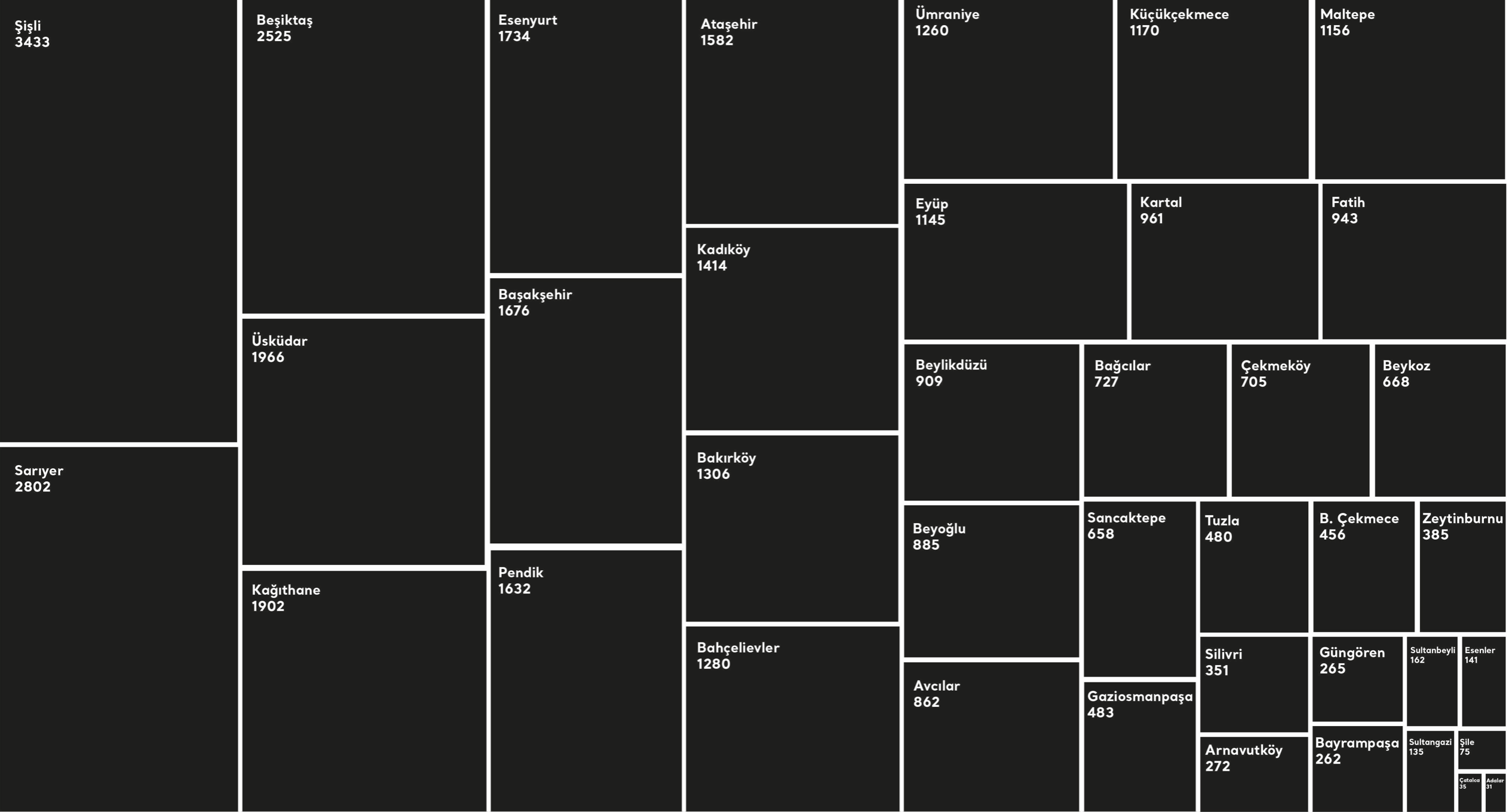 - Elimizdeki verinin tüm İstanbul’un konut piyasasına dair net bilgi vermediği aşikâr. İstanbul’daki emlak firmalarının ilanlarına ve diğer emlak arama sitelerindeki ilanlara dair verimiz bulunmuyor. Dolayısıyla bu araştırma kısıtlı bir verinin okumasını sunuyor.