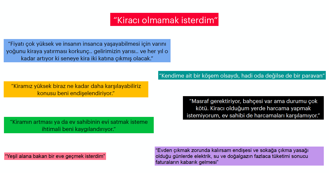 Bu araştırmayı oluşturmamızın bir başka motivasyonu da geçtiğimiz yıl yaptığımız “Nasıl Evlerde Kalıyoruz?” başlıklı kısa ankete gelen cevaplarla ortaya çıkan tabloydu. Pandemide evlerde daha sık vakit geçiren gruplar için mekânın niteliği daha da sorgulanabilir oldu. Diğer yandan depreme karşı güvensiz bir şehirde, riskli yapılarda oturanlar için evde kalmak zorunda olmak da başka bir handikap oluşturdu. Ankete verilen cevaplara baktığımızda kiracılığın güvensiz koşullarının yarattığı tedirginlik, deprem korkusu, evin yetersiz, sağlıksız mekânsal koşullarının oluşturduğu rahatsızlık gibi birçok konu ortaya çıktı.